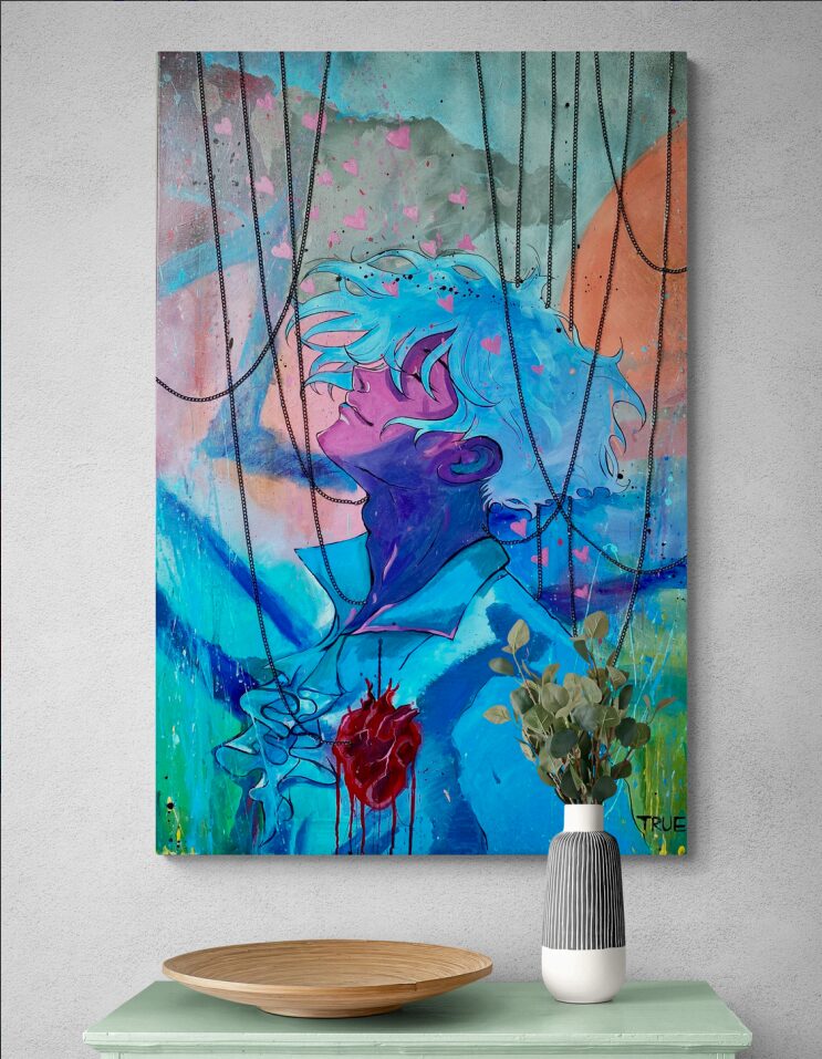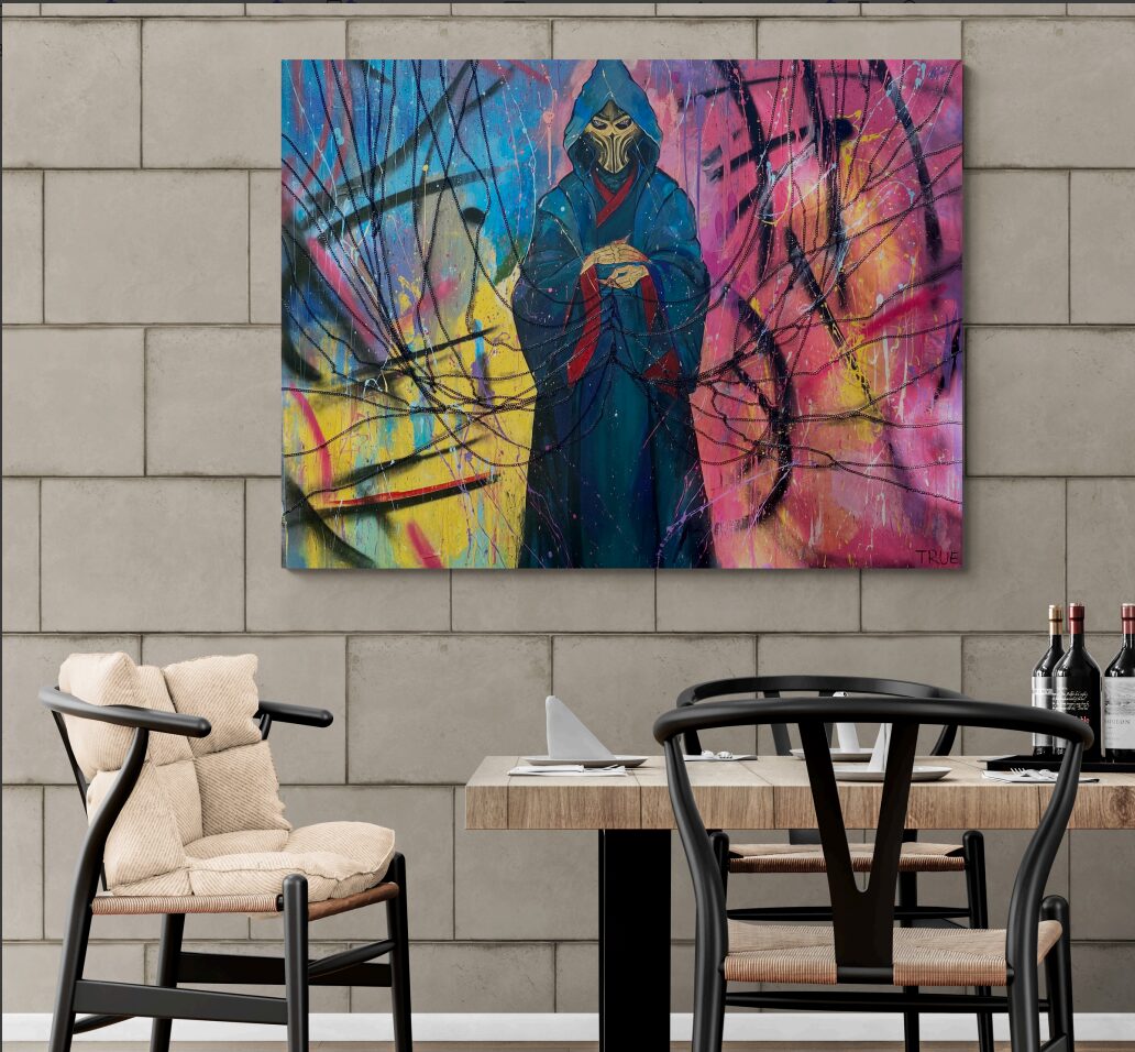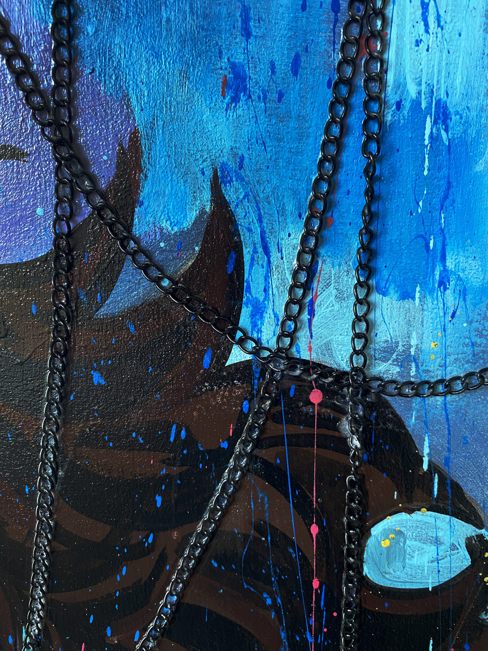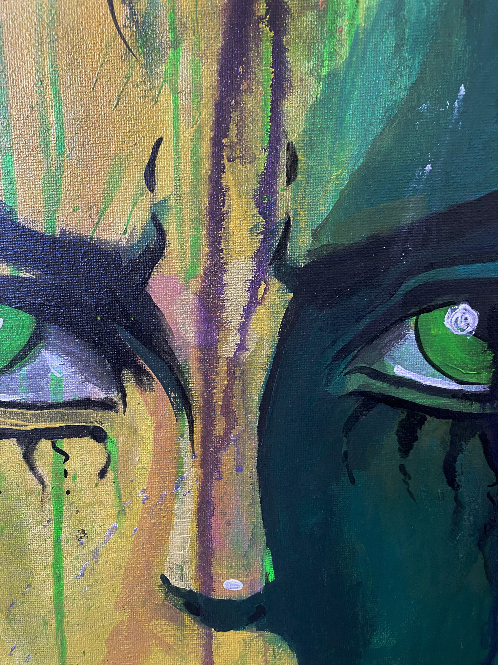 Финальная часть триптиха посвященного жизненному пути главного героя Атаки Титанов Эрена Йегера. Триптих исполнен в яркой желто-зеленой гамме с вкраплением неона который проявляется в холодном LED освещении вызывая внутреннее свечение картины.
