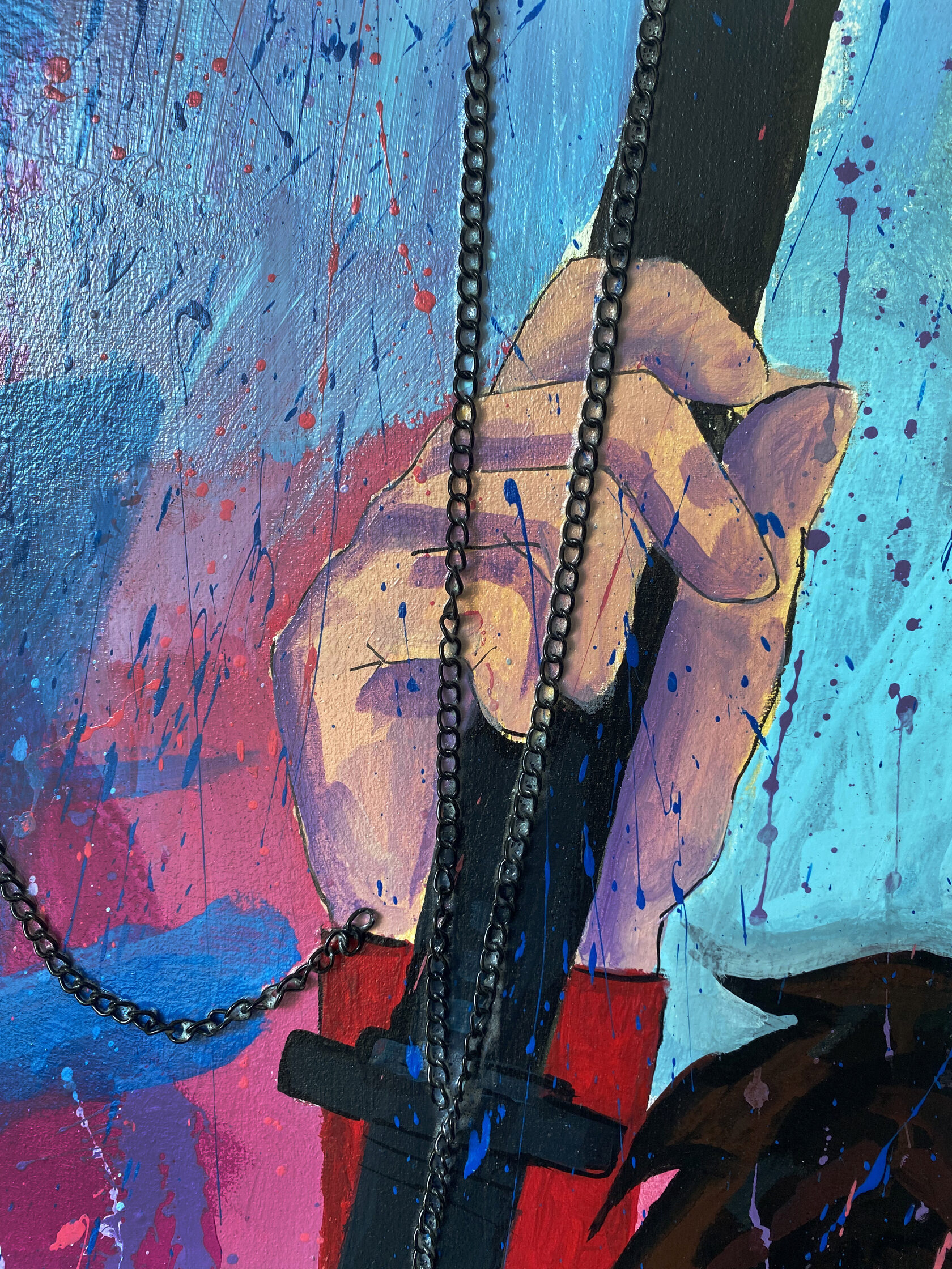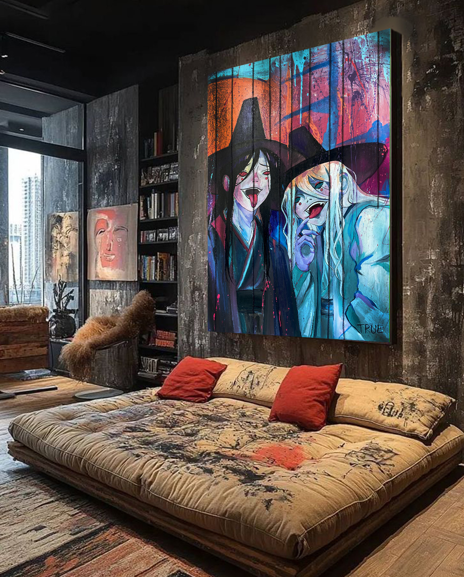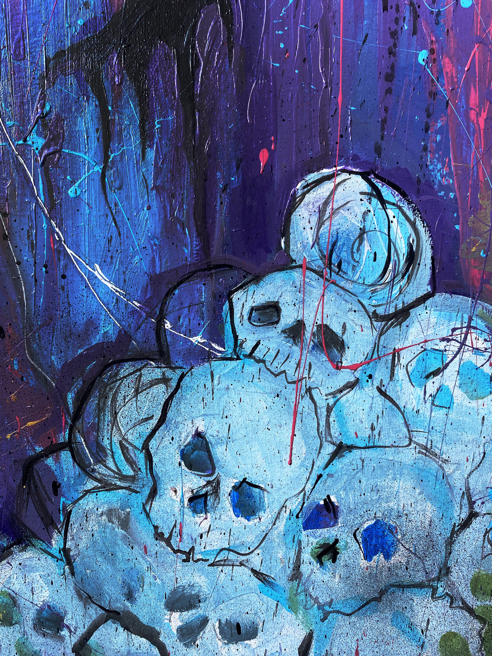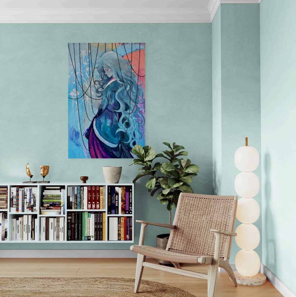 Финальная часть триптиха посвященного жизненному пути главного героя Атаки Титанов Эрена Йегера. Триптих исполнен в яркой желто-зеленой гамме с вкраплением неона который проявляется в холодном LED освещении вызывая внутреннее свечение картины.