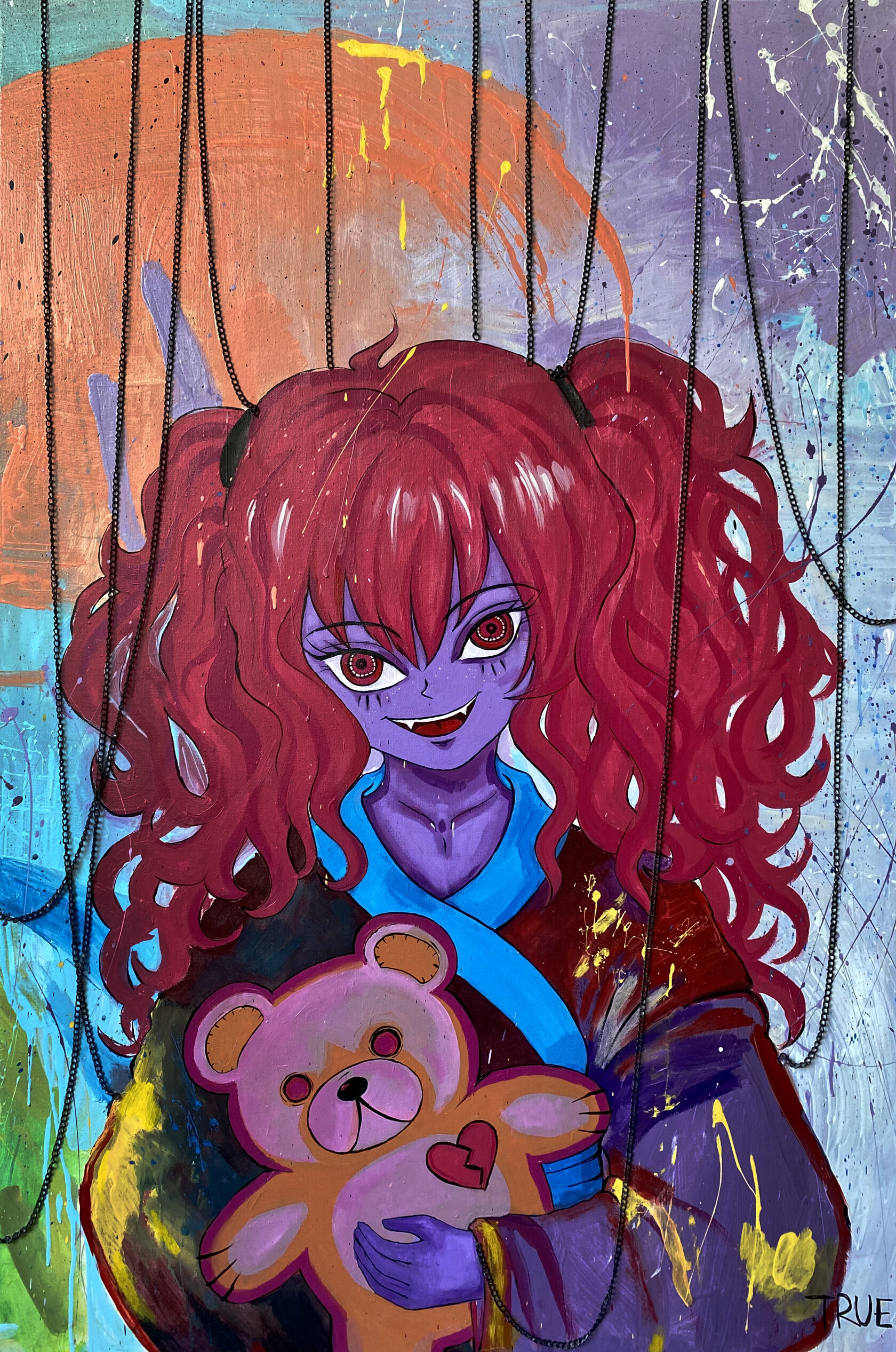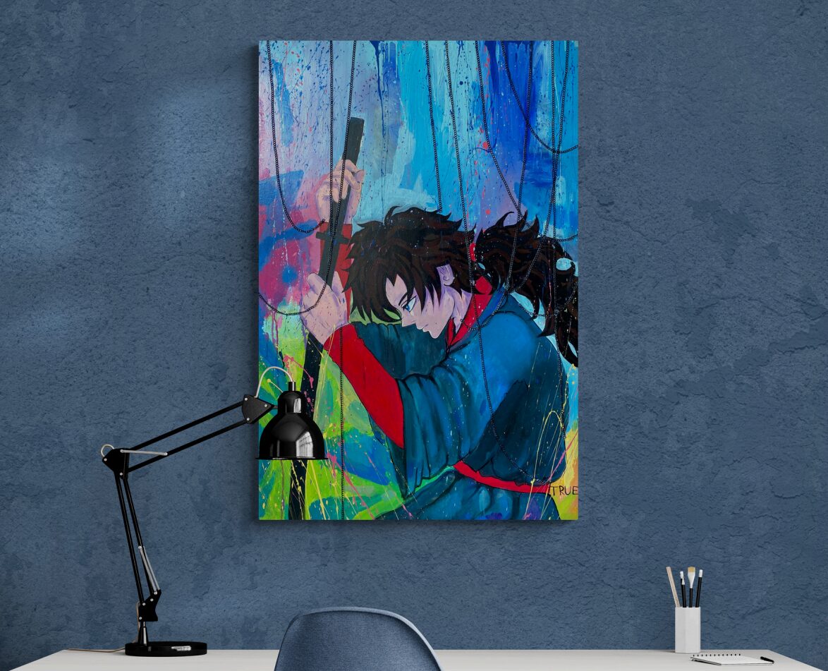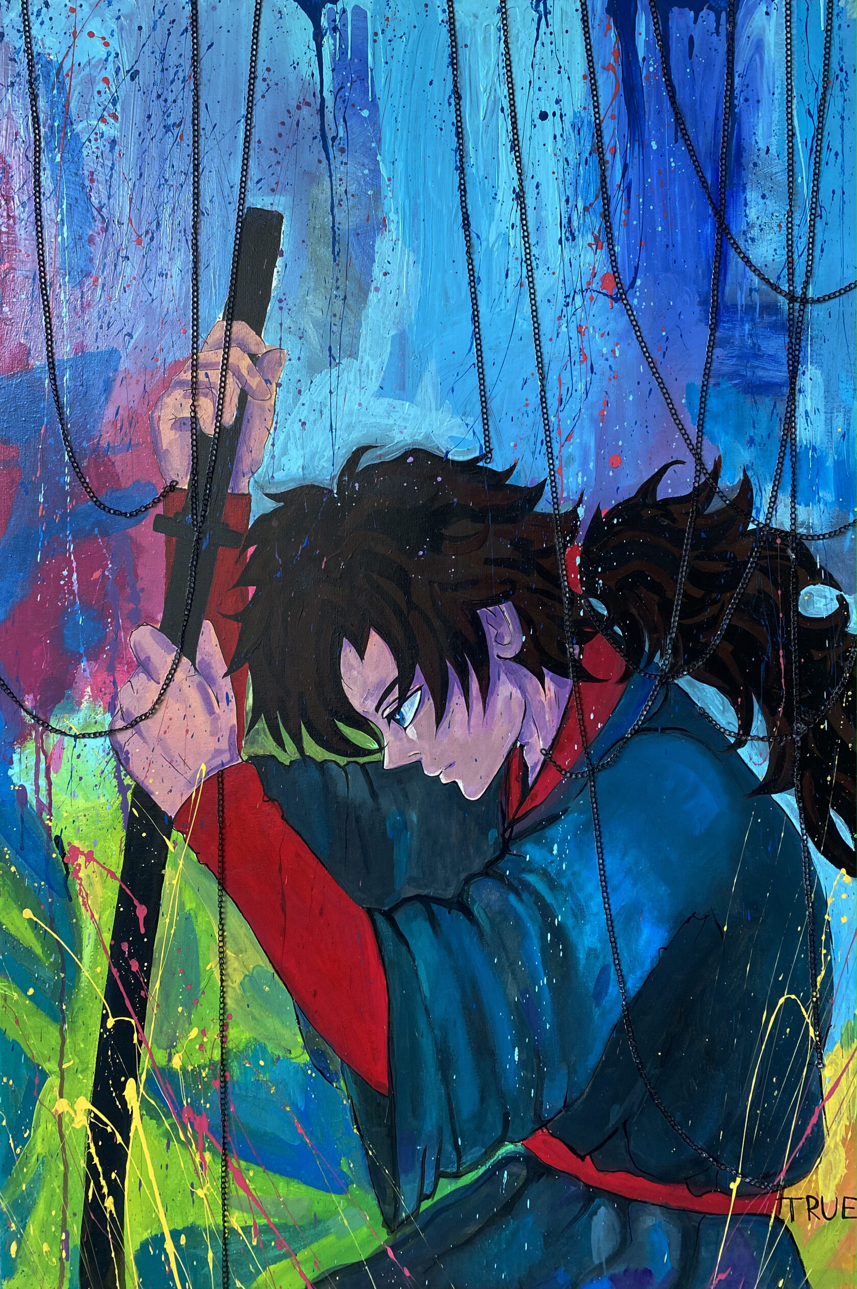 Первая часть триптиха посвященного жизненному пути главного героя Атаки Титанов Эрена Йегера. Триптих исполнен в яркой желто-зеленой гамме с вкраплением неона который проявляется в холодном LED освещении вызывая внутреннее свечение картины.