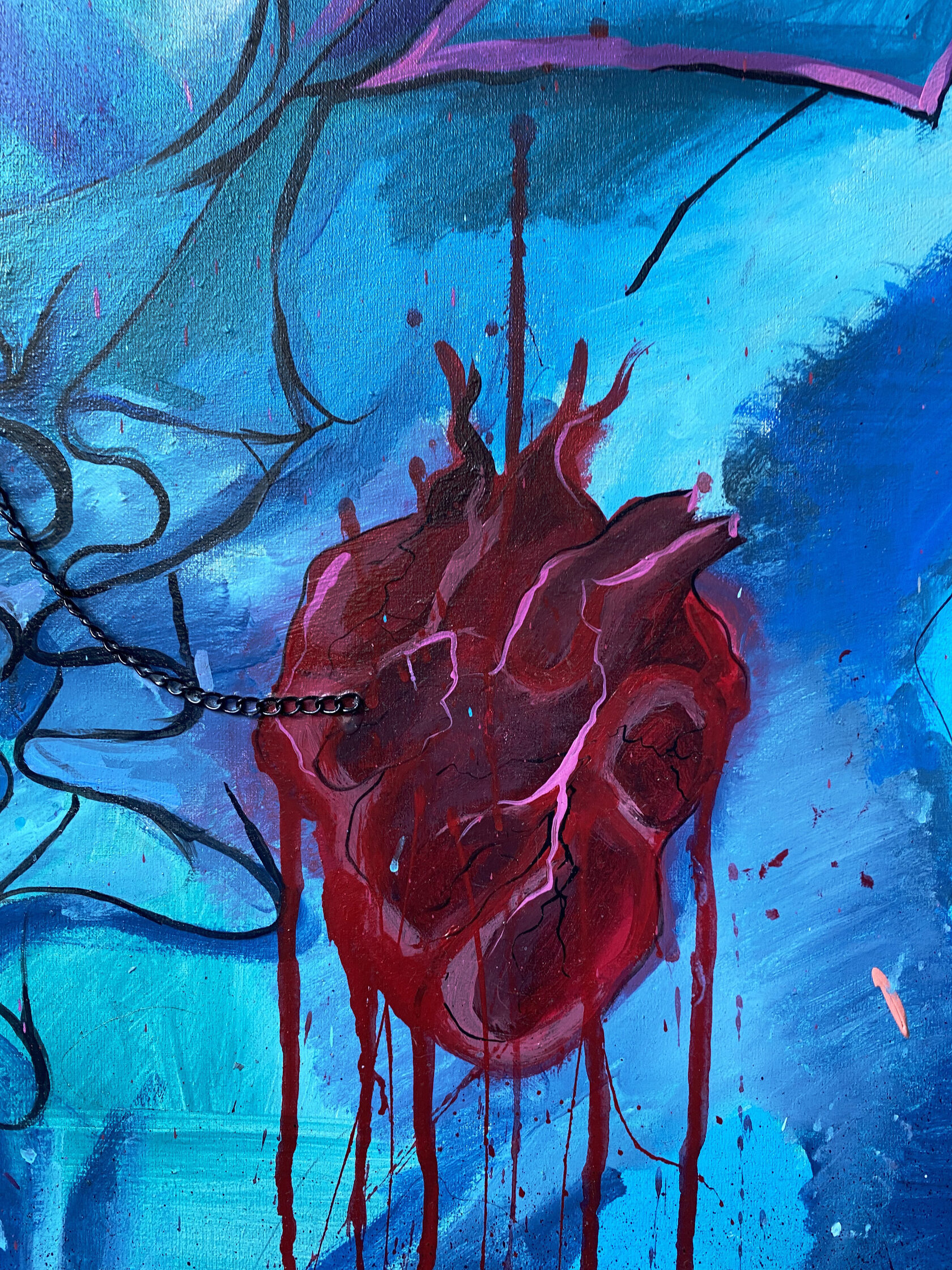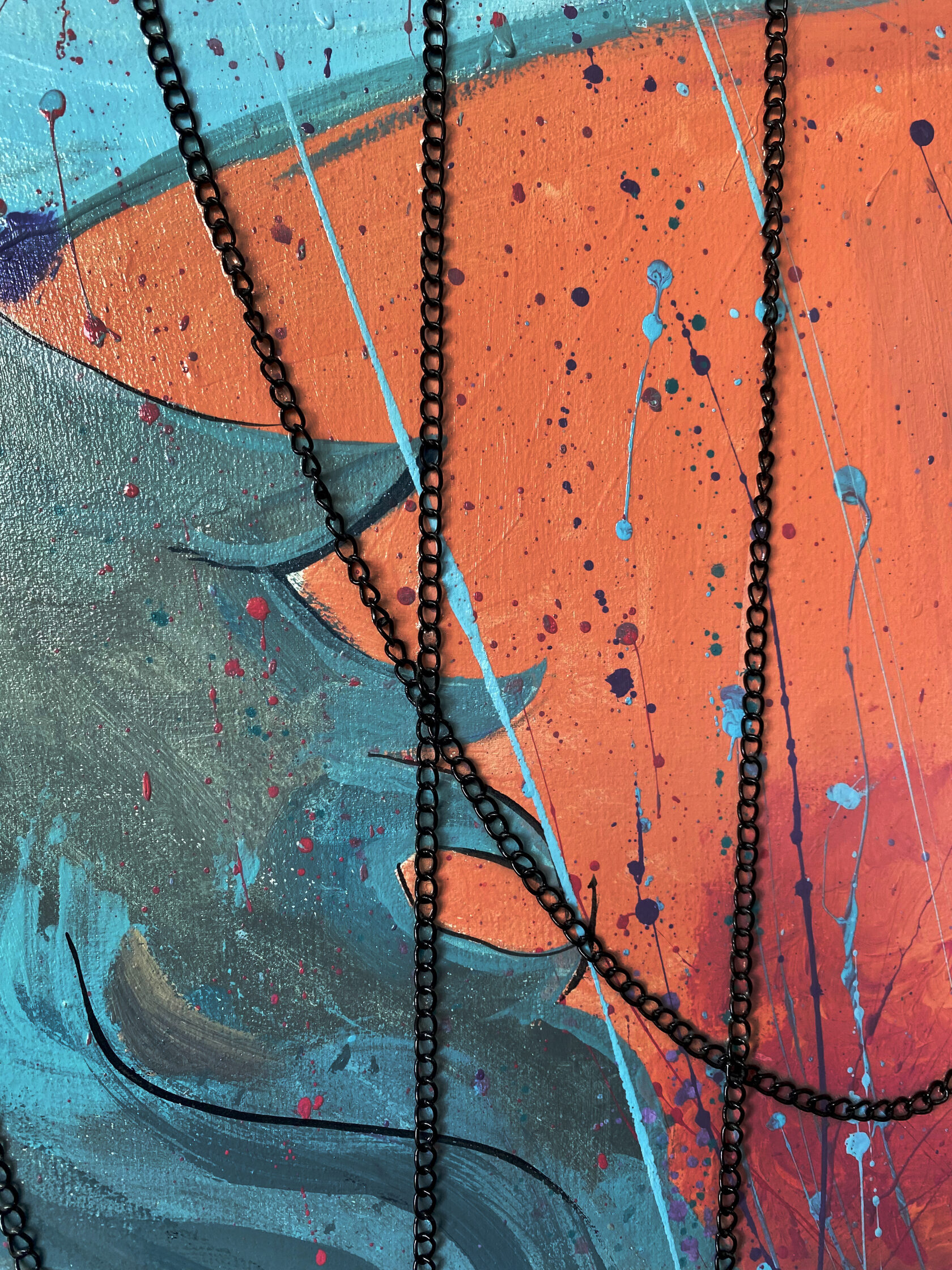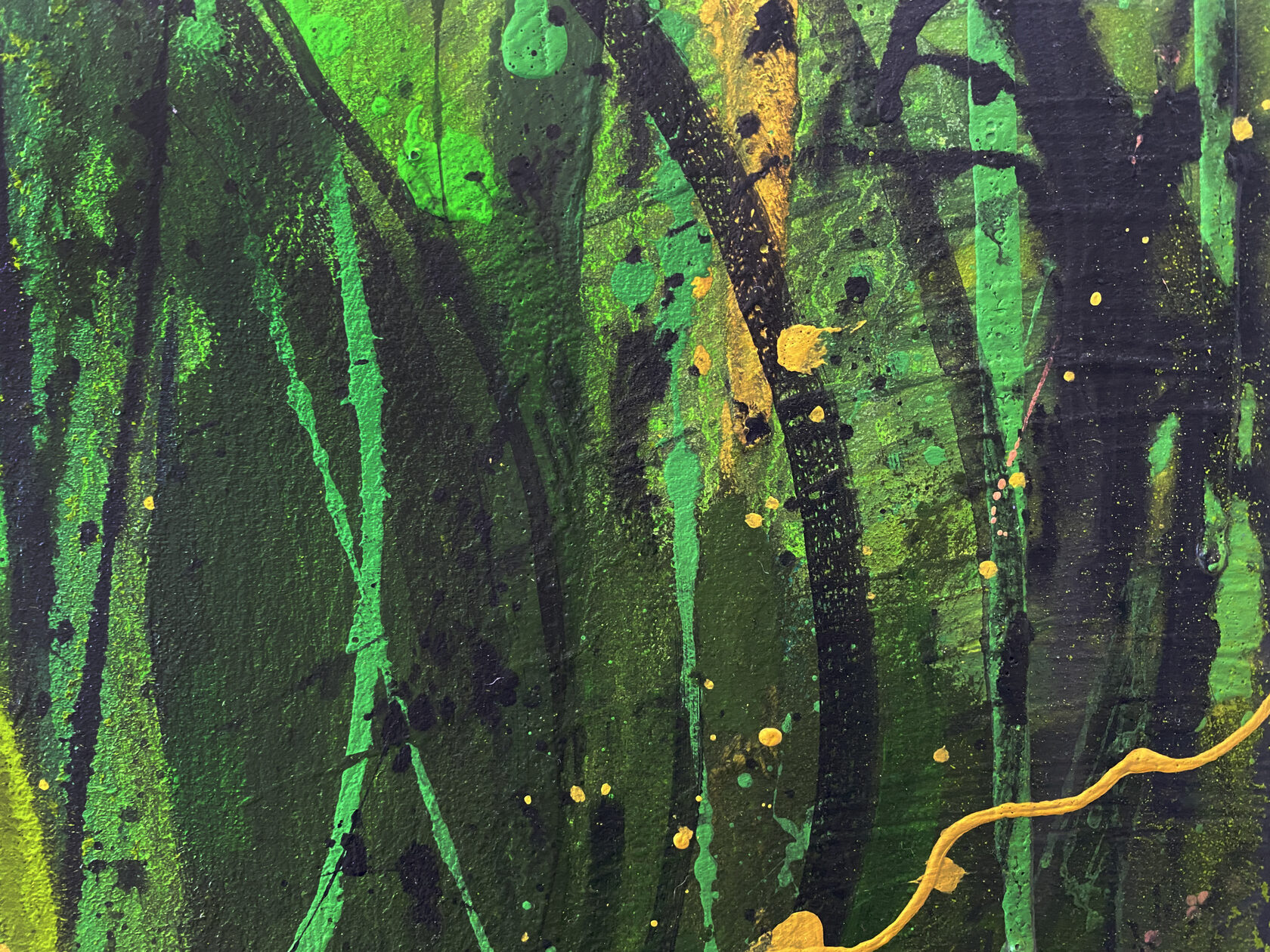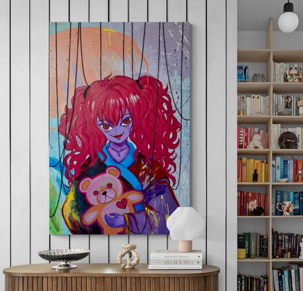 Первая часть триптиха посвященного жизненному пути главного героя Атаки Титанов Эрена Йегера. Триптих исполнен в яркой желто-зеленой гамме с вкраплением неона который проявляется в холодном LED освещении вызывая внутреннее свечение картины.